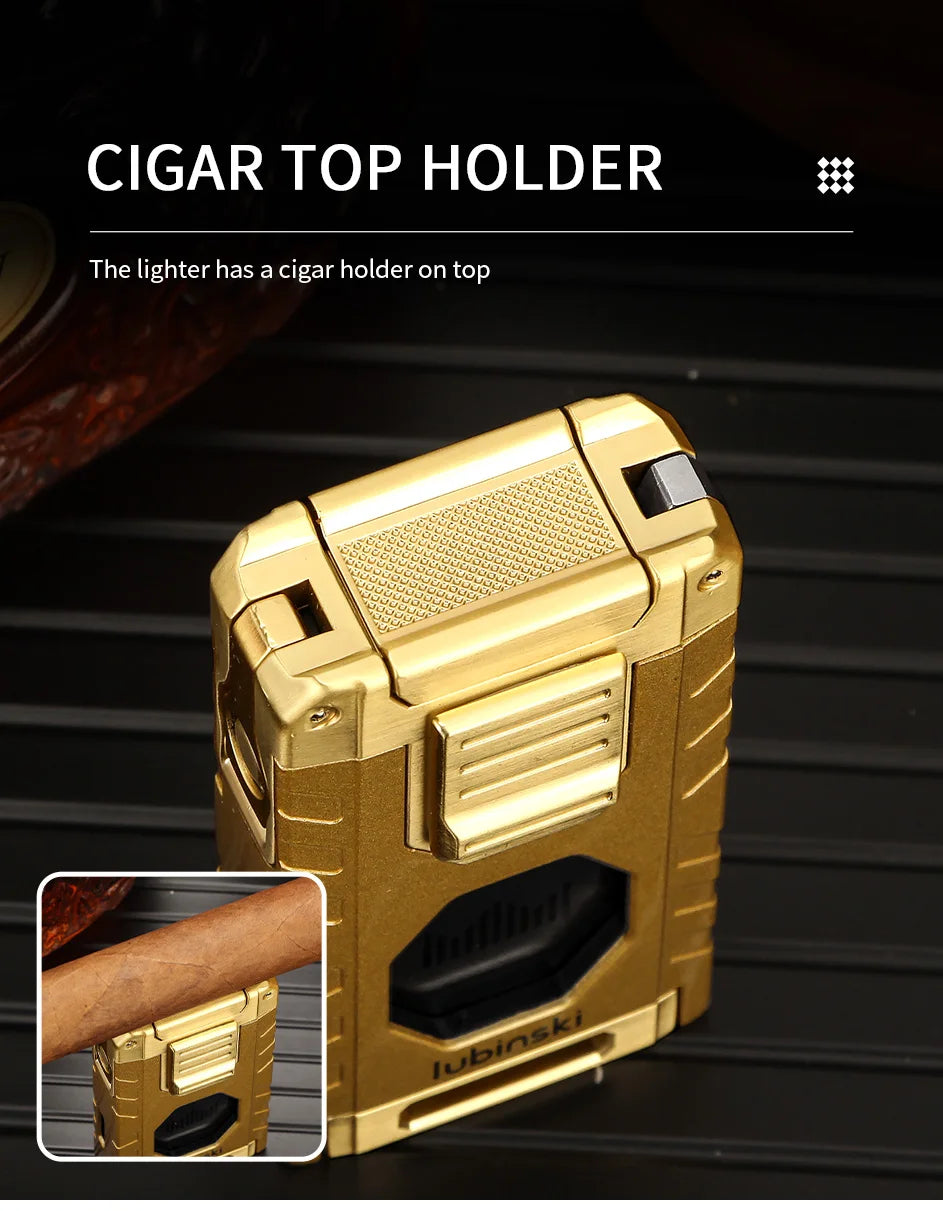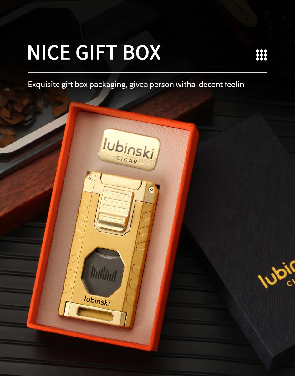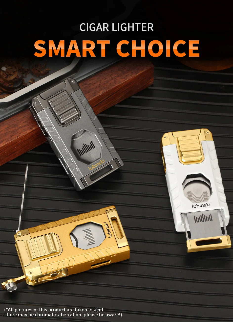 Elevate your cigar ritual with the Lubinski 3-Jet Cigar Lighter & Cutter Combo.