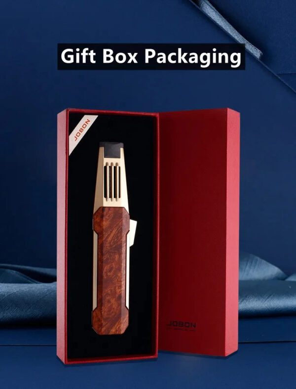 Ignite your cigars with precision using this durable zinc alloy torch lighter. Featuring an adjustable, windproof jet flame (up to 1300°C / 10cm), it ensures a quick, even light every time. Safety is paramount with its secure lock, high-temperature nozzle, and ceramic insulation. Easy to refill and operate with automatic electronic ignition, this versatile lighter is also perfect for making crème brûlée while you enjoy your cigar! Comes in an exquisite gift box.Â